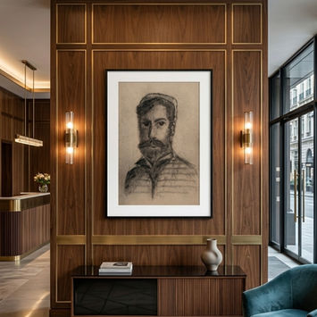I began drawing them as if from memory, seafarers from another era. Men shaped by weather, distance, and long passages at sea. Enlarged from original charcoal drawings, each portrait retains the texture and tonal depth of the page, creating a quiet, atmospheric presence within a space.